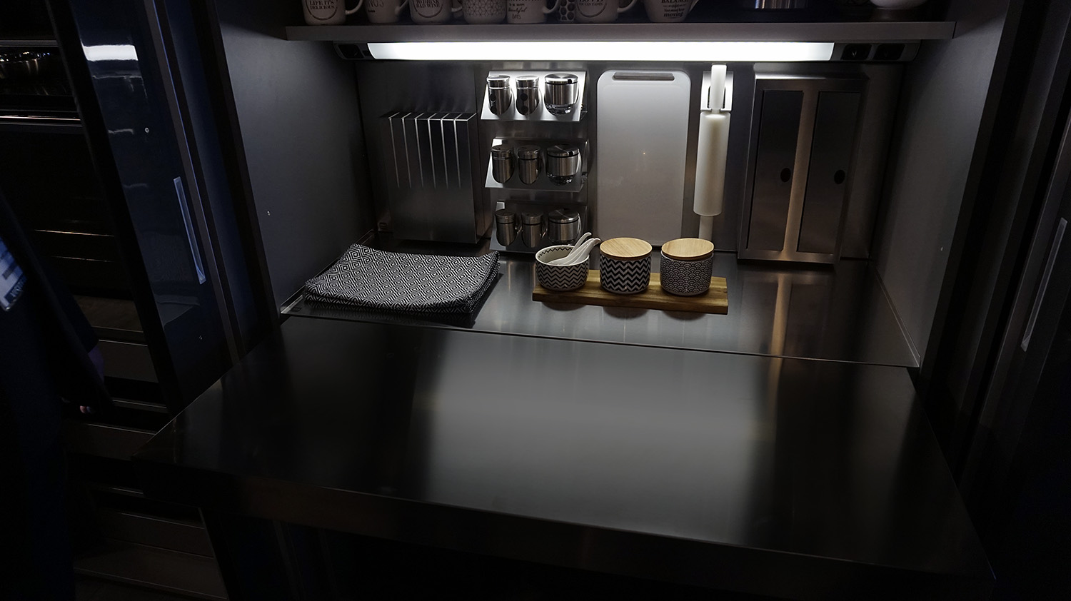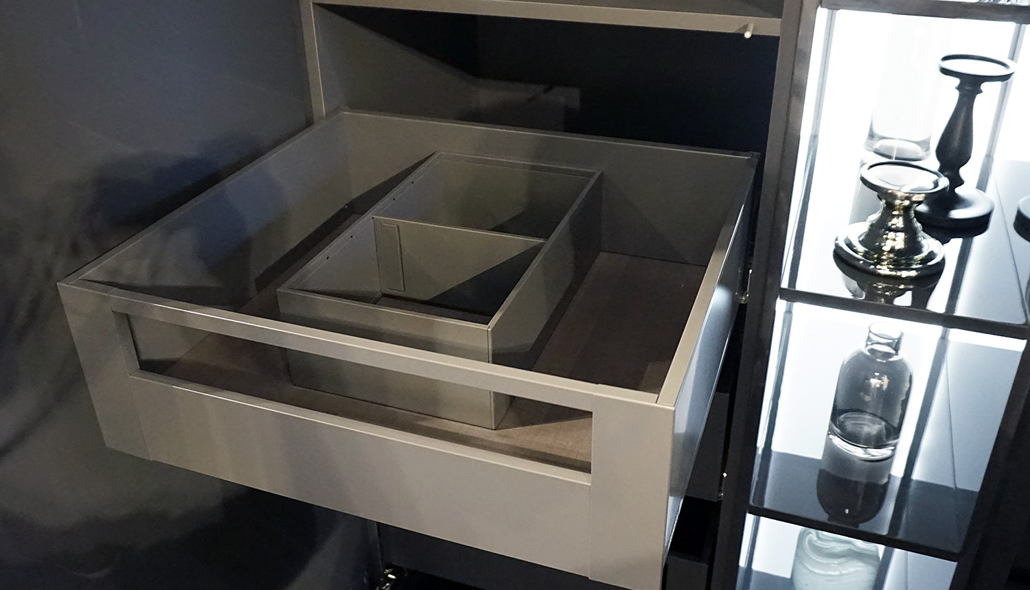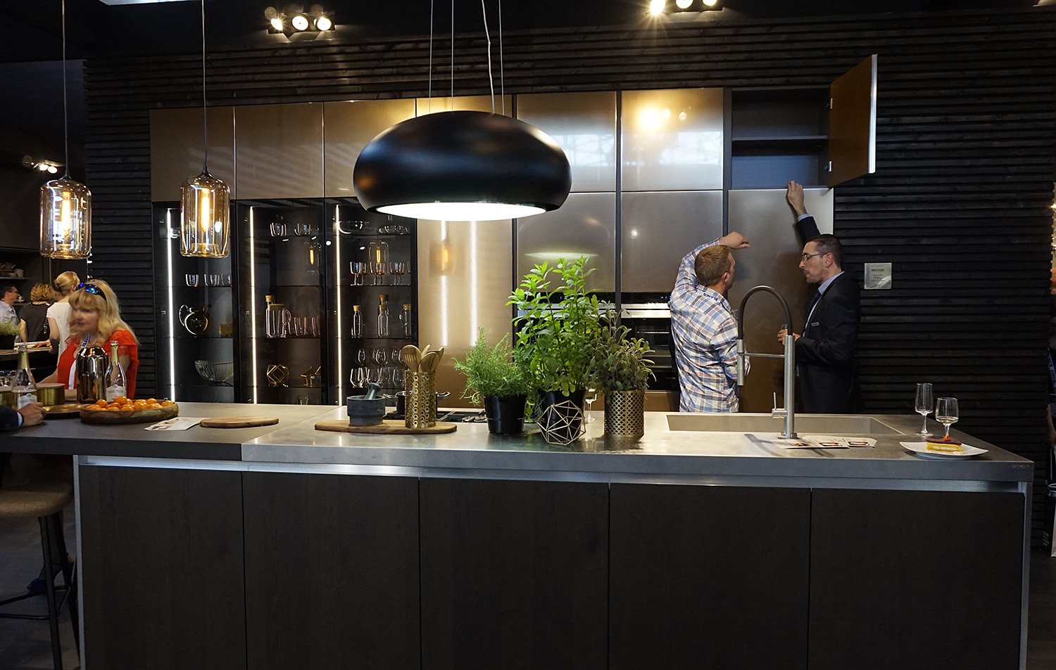 Fabricant allemand de meuble de cuisine sans poignée, Hacker, présentera son modèle d’ouverture ergonomique sans installation électrique.